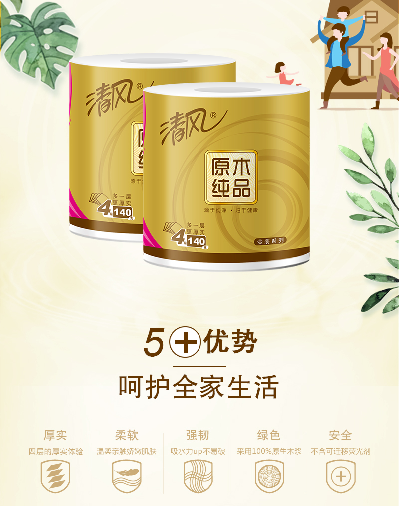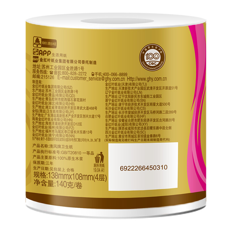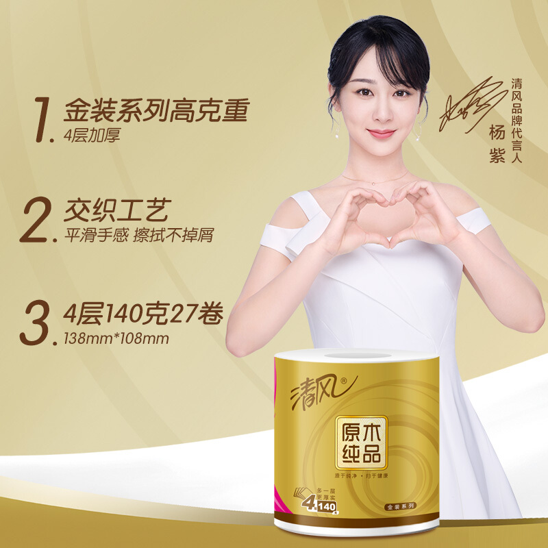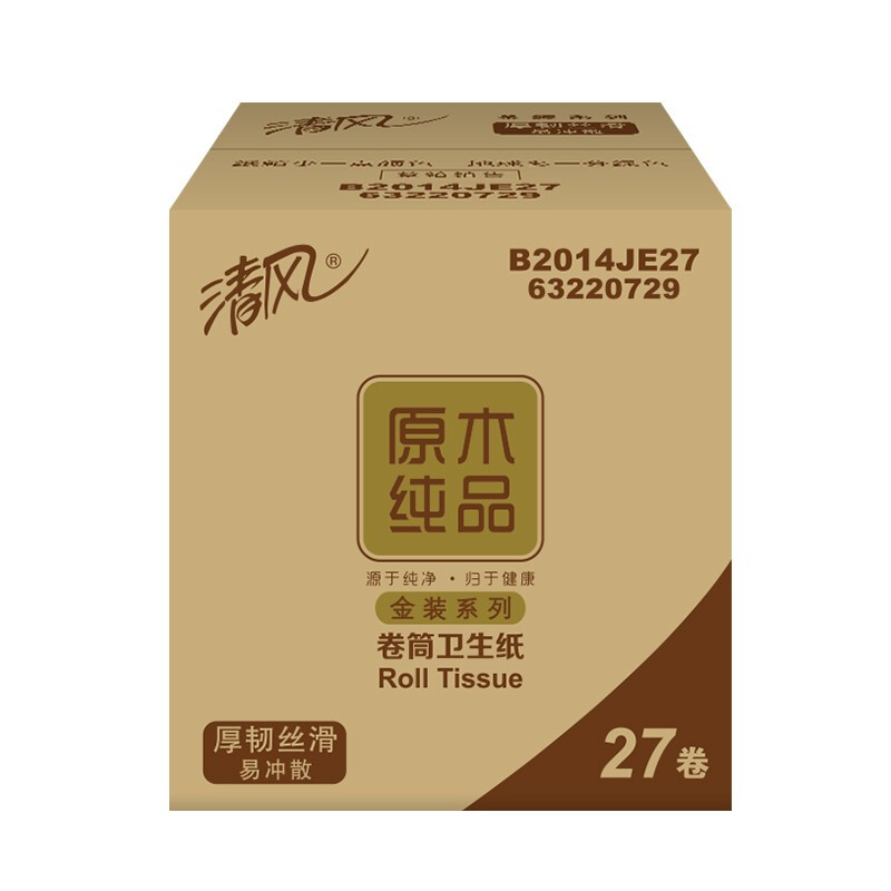 - 商品名称:清风(APP)卷纸 有芯 原木金装 4层加厚140克卫生纸巾27卷(母婴可用可冲水新老包装随机发货)