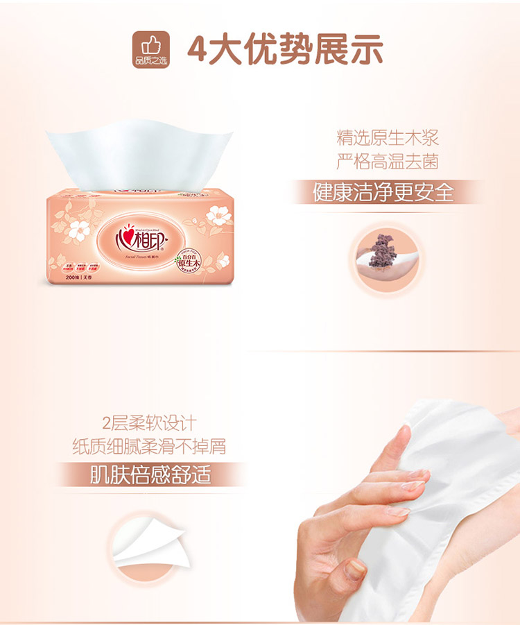 商品名称:心相印抽纸 经典系列 2层180抽面巾纸*6包(小规格/新老包装随机发货)软抽