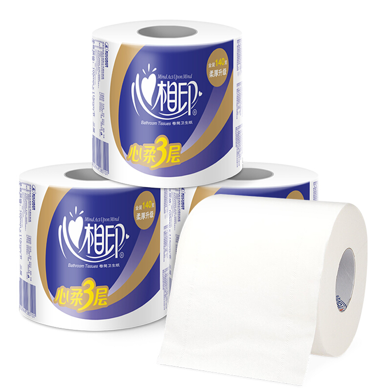 心相印卷纸 心柔系列 3层/4层140g 27卷卫生纸巾(冲水易降解 整箱销售)新旧品随机发货