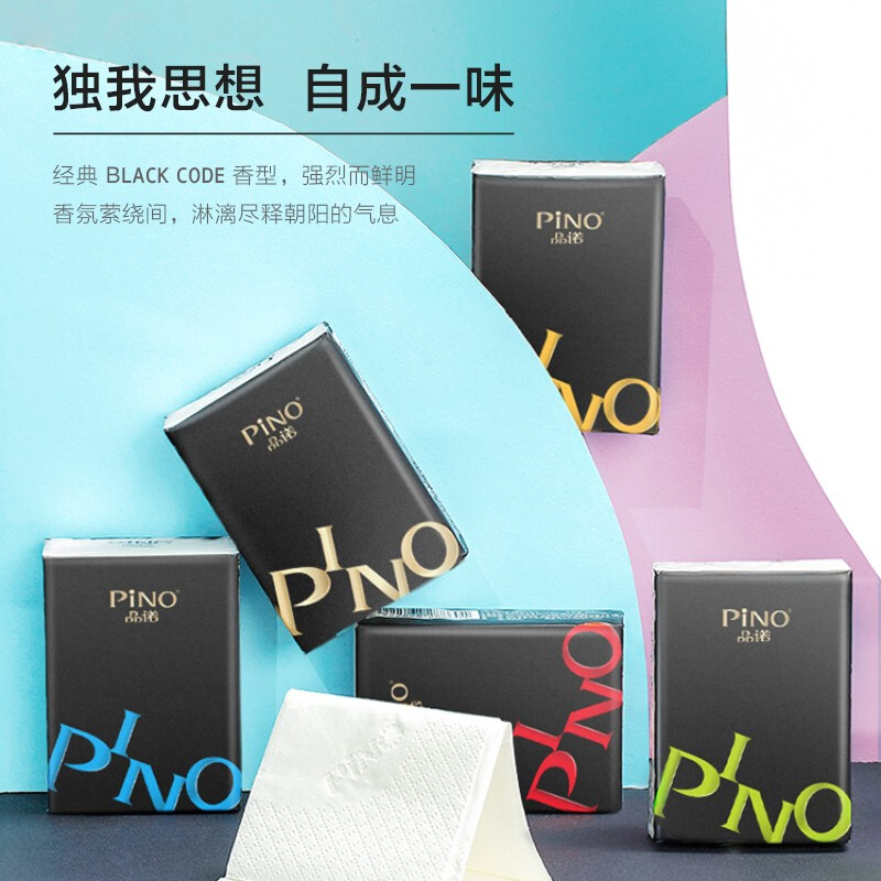 商品名称:心相印手帕纸 品诺 可湿水加厚面巾纸 4层8片*12包 黑白系列 黑色密码香