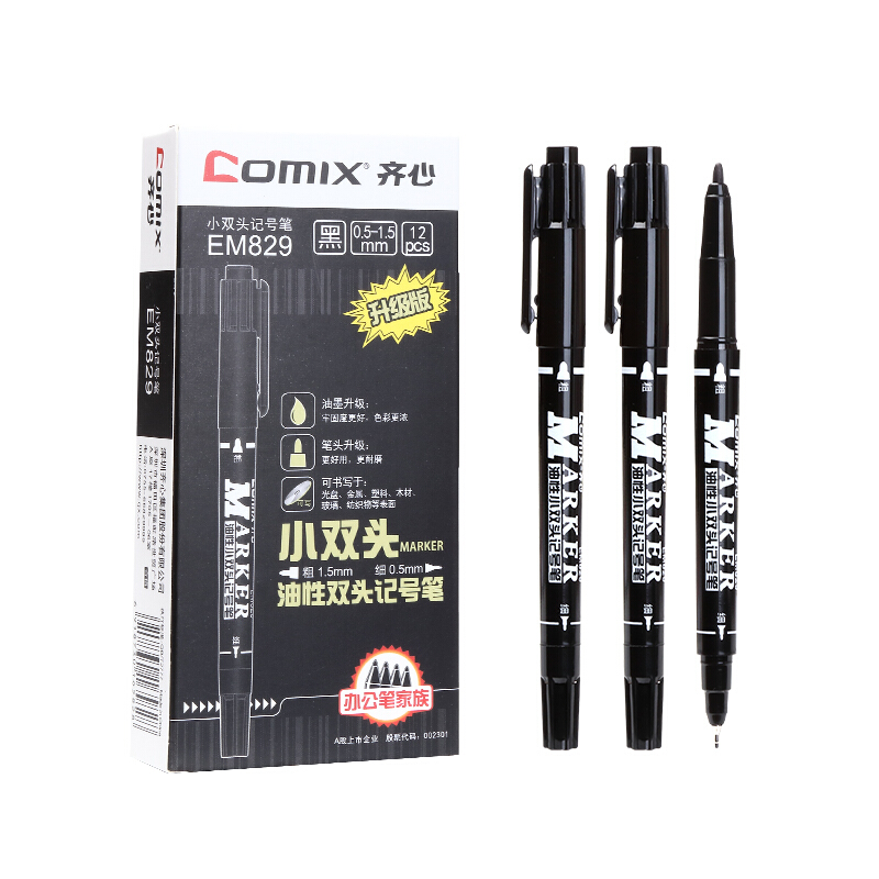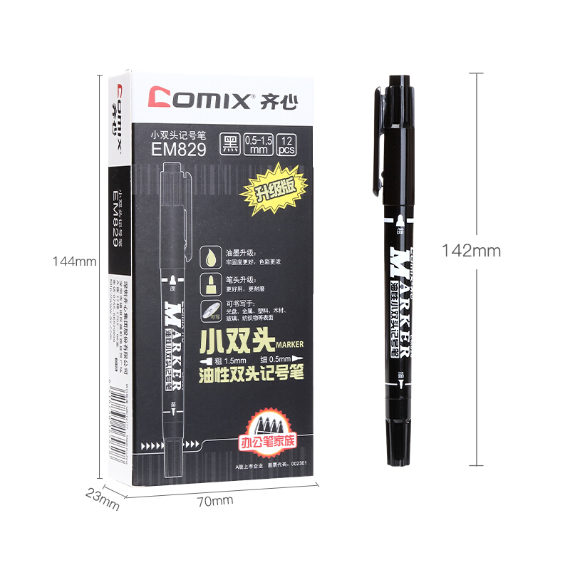 - 商品名称:齐心(Comix)小双头防水速干油性物流记号笔大头笔签名笔马克笔12支/盒 工具 黑色 EM829