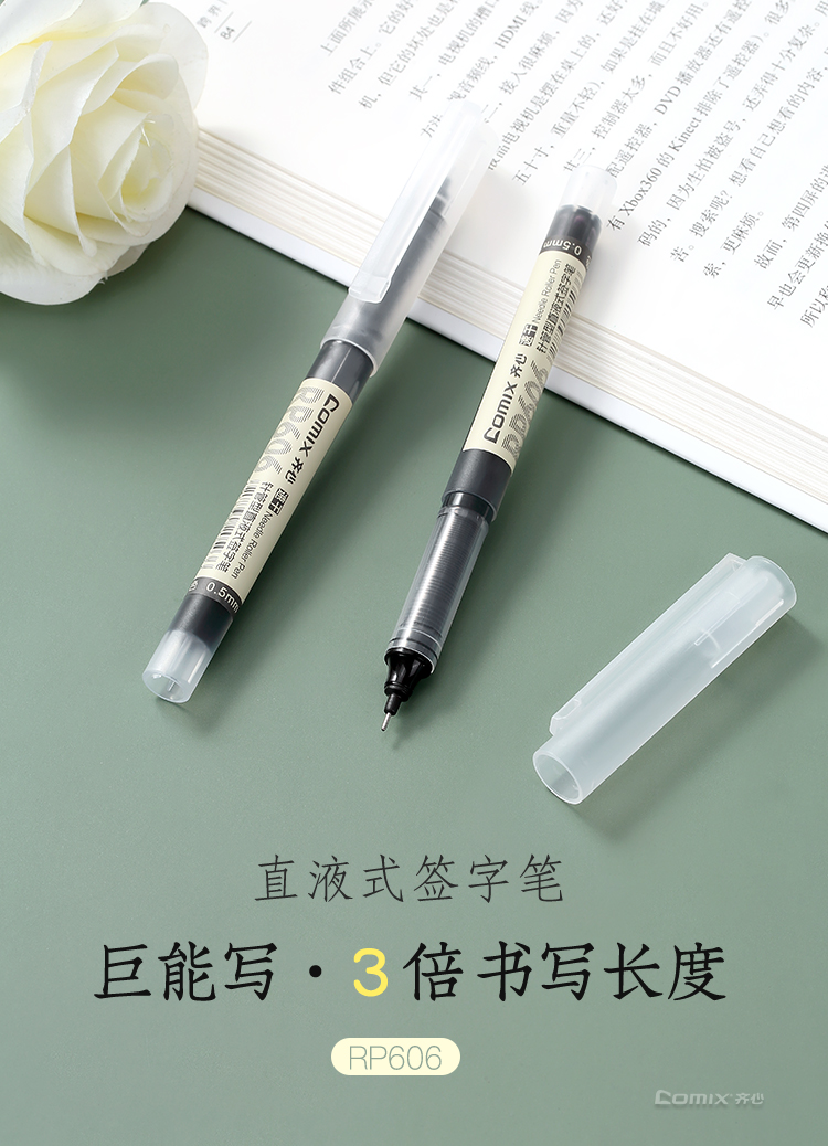 - 商品名称:齐心(Comix)0.5mm巨能写直液式针管中性笔签字笔水笔 10支装 黑色 RP606