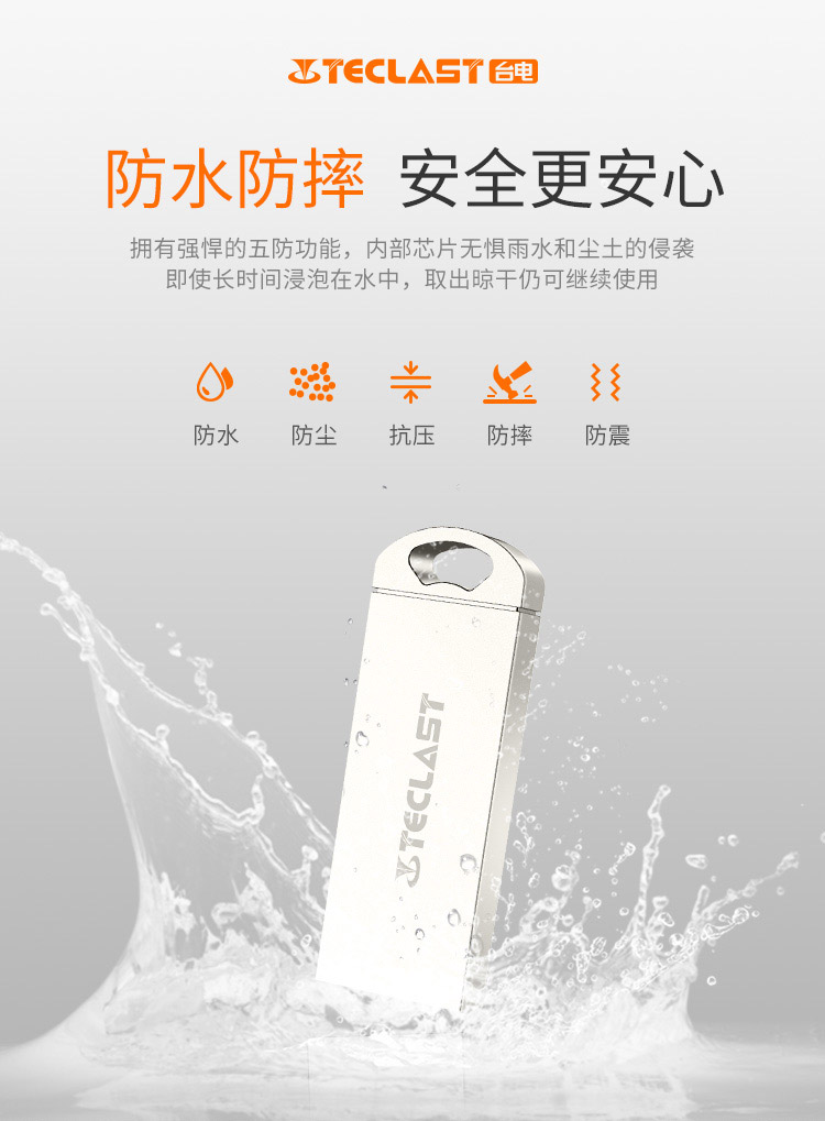 商品名称:台电(Teclast) 8GB USB2.0 U盘 乐存系列 香槟金 招标投标小U盘 防水抗摔便携轻巧迷你车载金属优盘