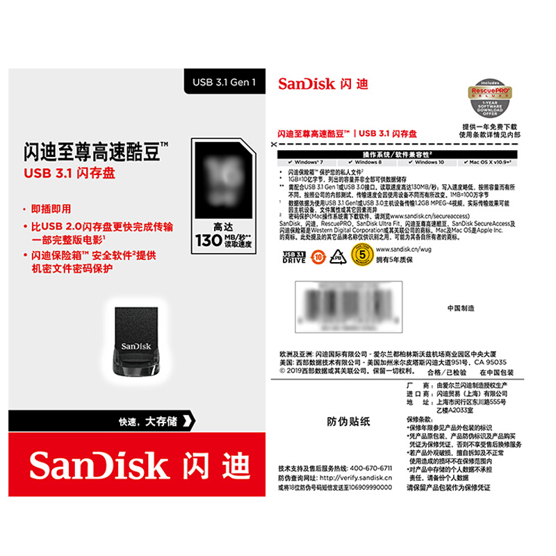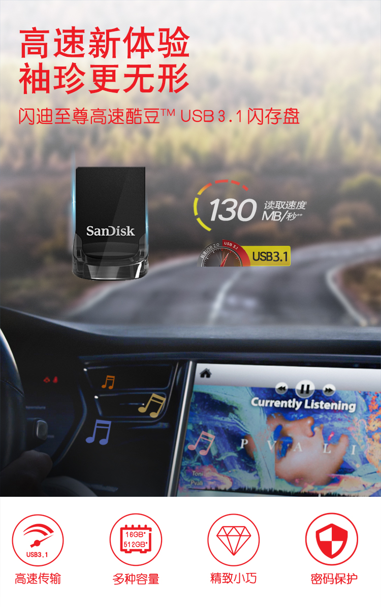 商品名称:闪迪(SanDisk)16GB USB3.1 U盘 CZ430酷豆 黑色 读速130MB/s 车载U盘 小身材 大容量