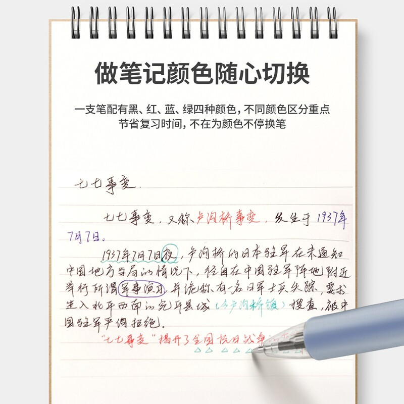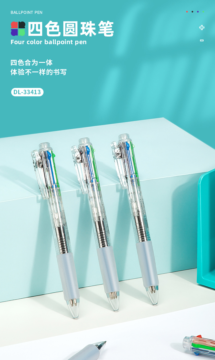 - 商品名称:得力(deli)多功能4色圆珠笔 0.7mm子弹头按动笔原子笔中油笔 (黑红蓝绿) 5支/盒DL-33413