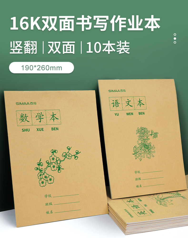 - 商品名称:西玛(SIMAA)小学生3-6年级统一标准16K大号作业本 田格作业本10本装 8822