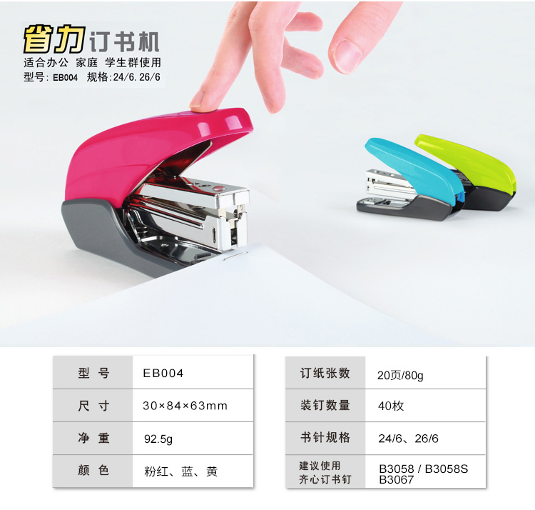 - 商品名称:齐心(Comix)省力型订书机套装(订书器+起订器+订书钉) 12# 粉红 EB004