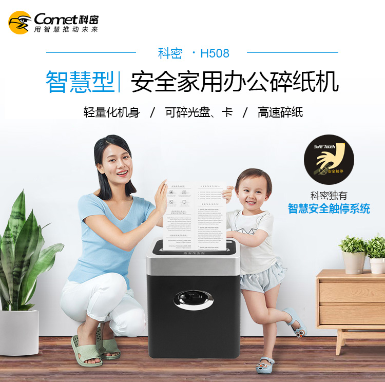 - 商品名称:科密(comet)4级保密办公家用碎纸机(单次5张 持续5分钟 15L 可碎卡、光盘)H508
