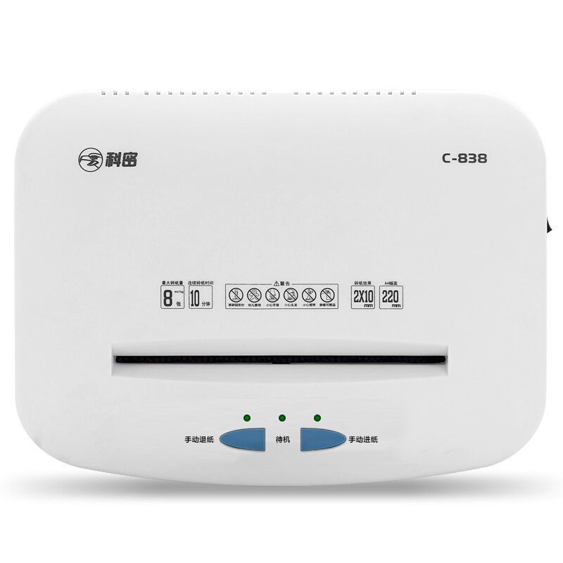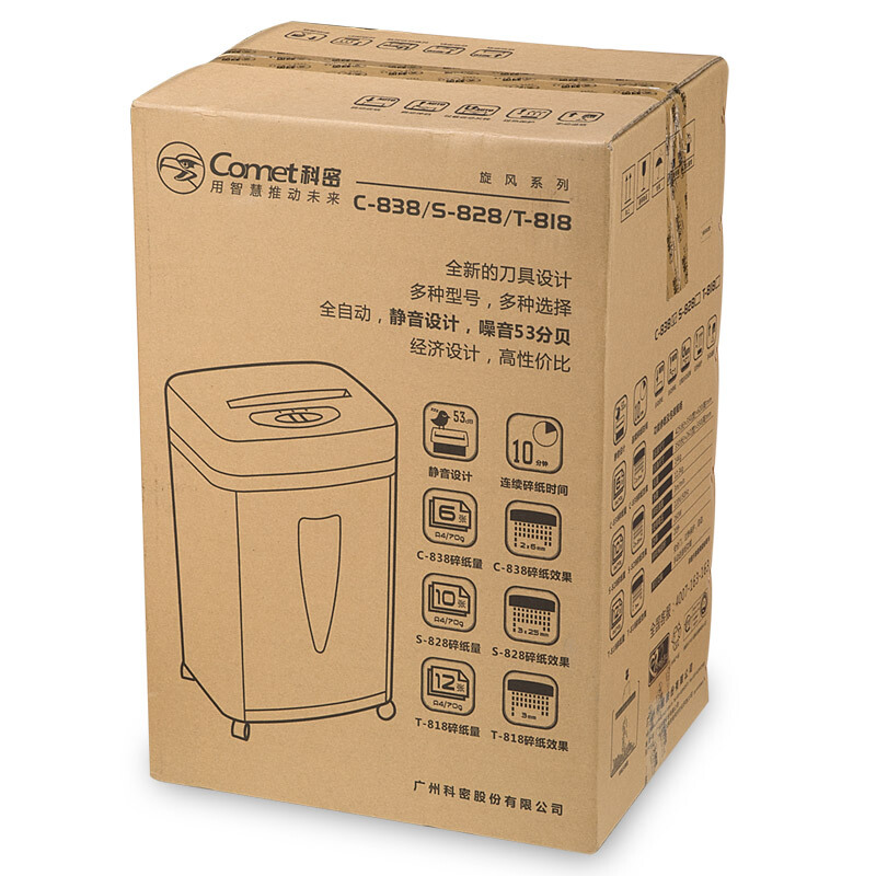 - 商品名称:科密(comet)5级保密办公商用碎纸机(单次8张 持续10分钟 20L 可碎卡、订书针)C-838