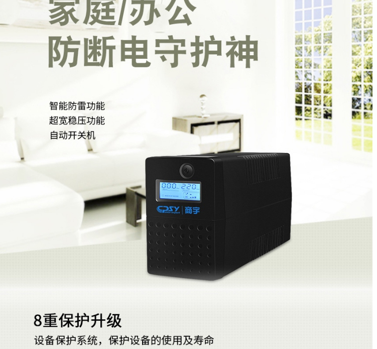 - 商品名称:商宇ups不间断电源S2000大功率1200W备用电源应急台式电脑防停电宿舍断电后备式家用停电宝