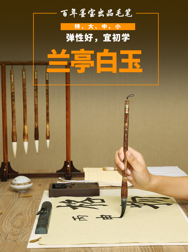 - 商品名称:弘梅兰亭白玉狼毫毛笔套装 狼毫小楷中楷大楷学生初学毛笔 文房四宝狼羊兼毫毛笔