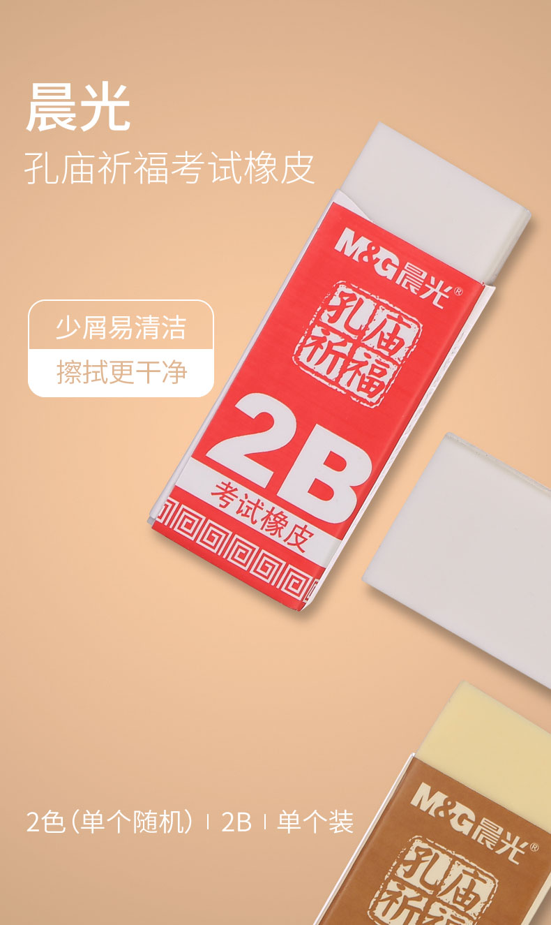 - 商品名称:晨光(M&G)文具2B小号橡皮 学生美术考试专用橡皮擦 孔庙祈福考试用品 5块装颜色随机AXP96409