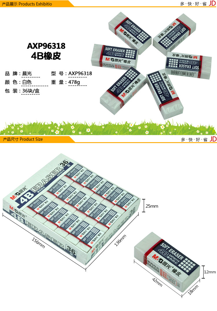 商品名称:晨光(M&G)文具4B白色橡皮 学生绘图考试橡皮擦 学习办公通用橡皮擦 36块装AXP96318