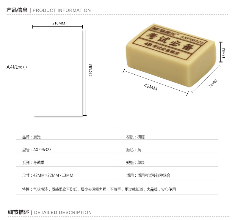 - 商品名称:晨光(M&G)AXP96323橡皮商务办公用品4B橡皮擦办学生考试橡皮擦小学生幼儿园1包30块