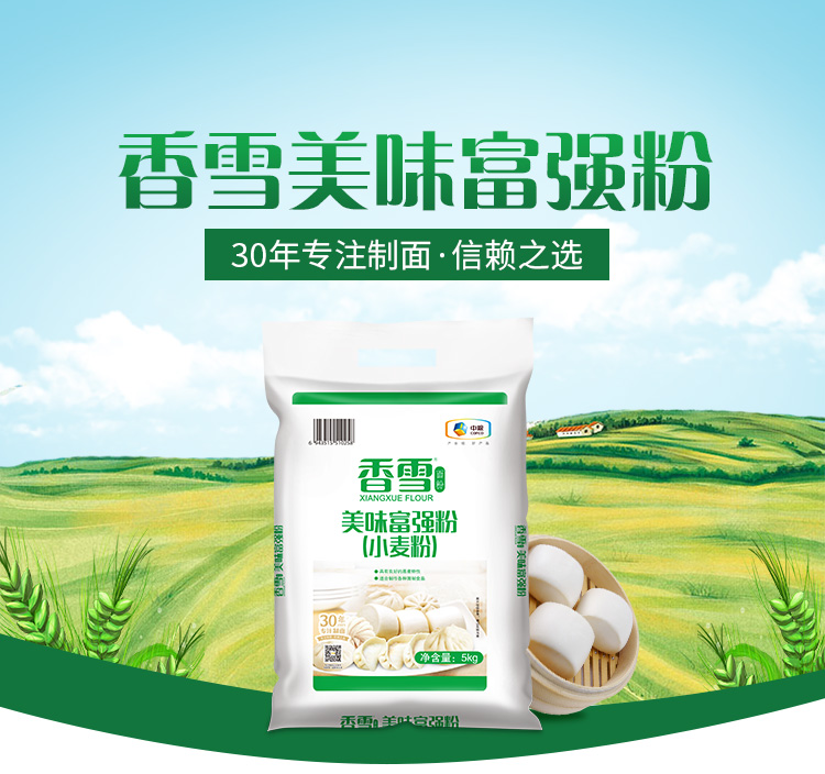 - 商品名称:香雪 面粉 美味富强粉 小麦粉 中筋面粉 适合馒头 包子 烙饼等各类面食更适合蒸制类 中粮出品 5kg