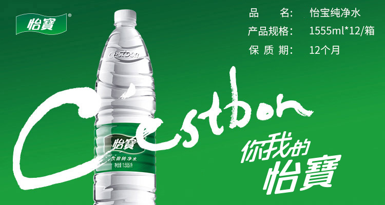- 商品名称:怡宝 饮用水 饮用纯净水1.555L*12瓶 整箱装