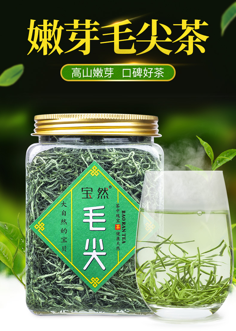 - 商品名称:宝然茶叶 2021新茶散装绿茶高山茶园毛尖茶3罐装共300g