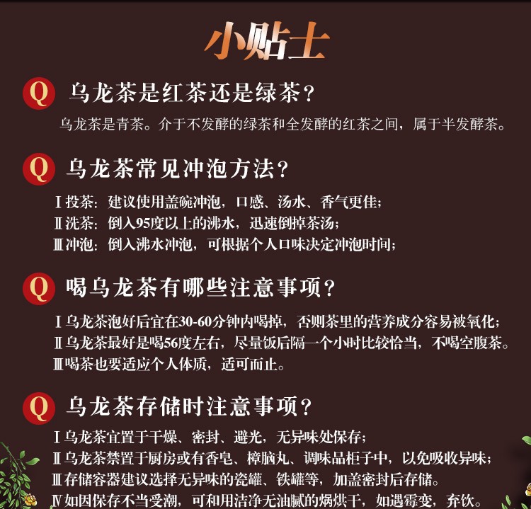 - 加工工艺:采摘、晒青、晾青、摇青,杀青、烘焙