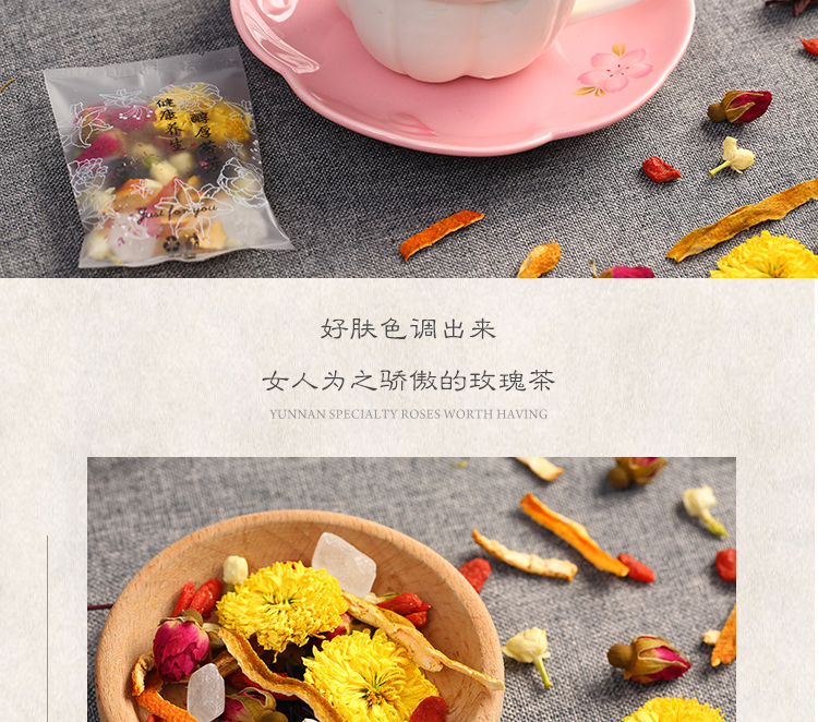 - 商品名称:玫瑰茉莉花茶组合女人淡斑茶菊花玫瑰茄洛神花八宝花草茶润肤清痘养生茶玫瑰花茶 美肤美颜茶