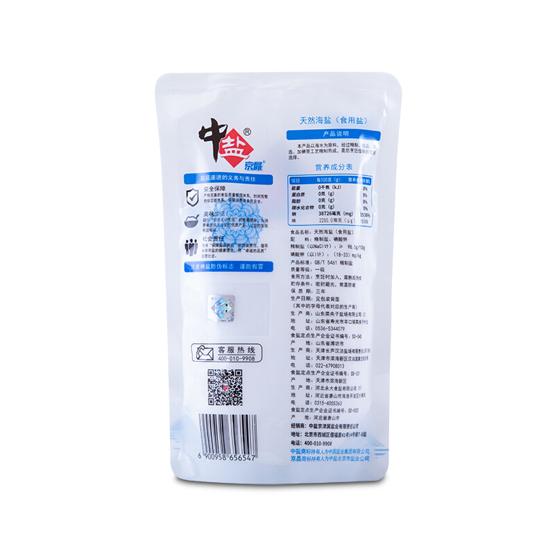 - 商品名称:中盐 盐 天然海盐 加碘盐 精制海盐 调料调味品 320g 中盐京津冀出品