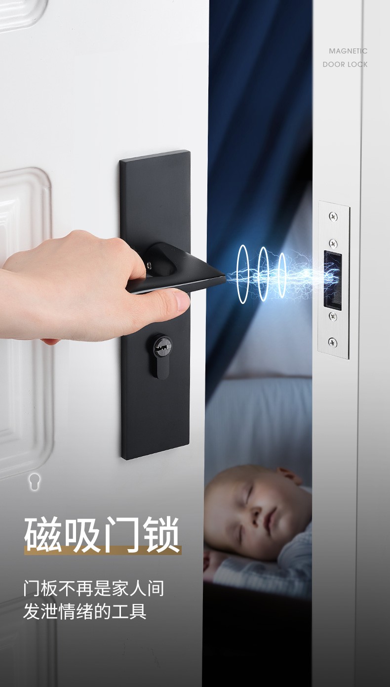 - 商品名称:卡贝磁吸门锁室内卧室门锁黑色家用静音门锁实木门锁五金机械锁 磁吸门锁