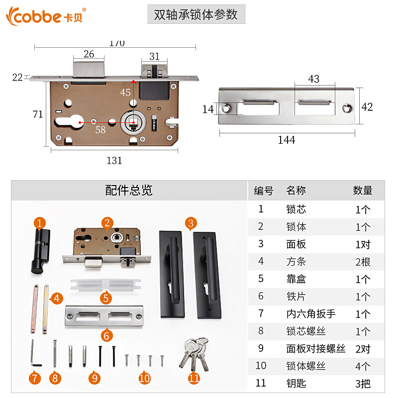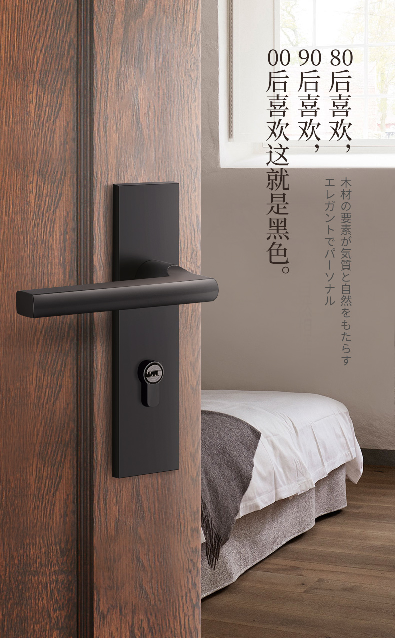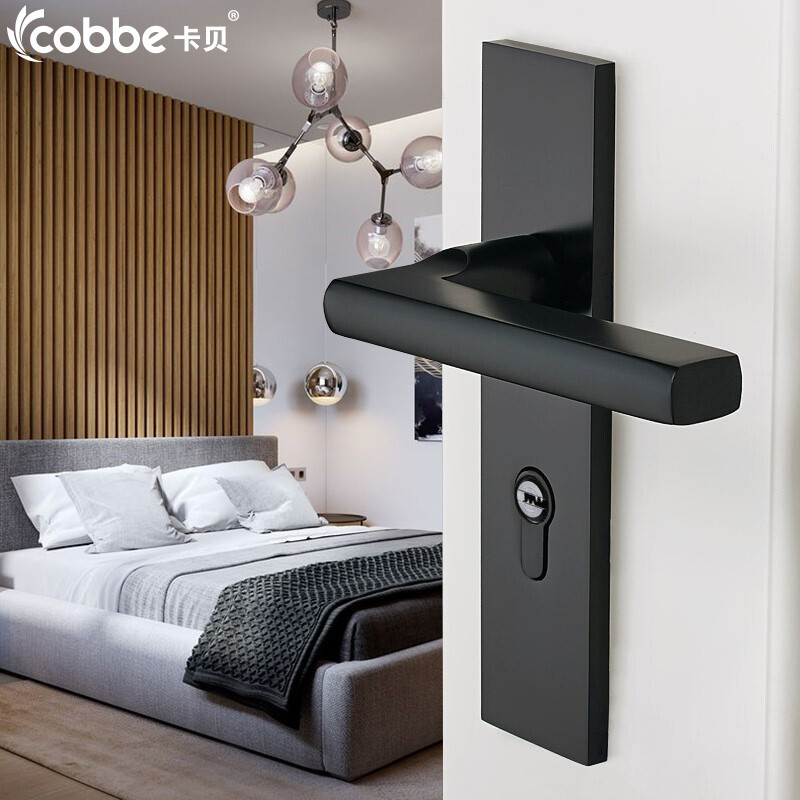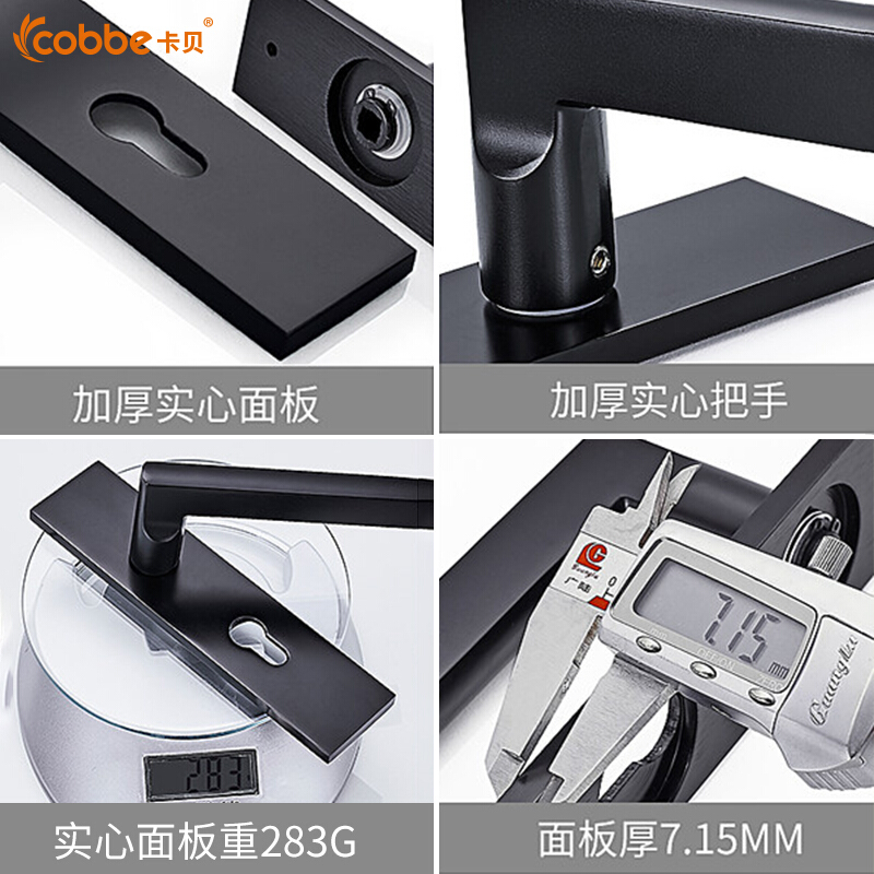 - 商品名称:卡贝门锁室内卧室房门木门静音门锁黑色太空铝通用型面板锁门把手机械锁