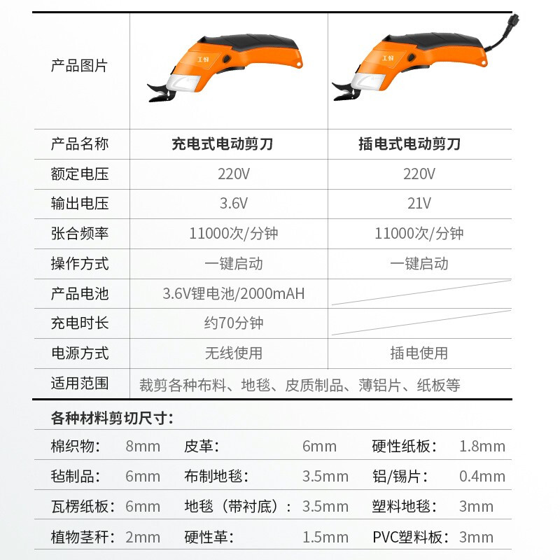 商品名称:工蜂3.6V电动剪刀锂电式手持式裁布神器服装地毯皮革布料裁布机小型切布机钨金刀头GCS3.6-C