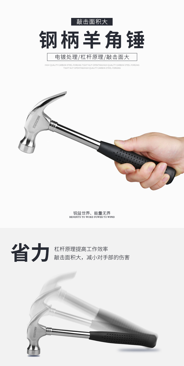 - 商品名称:锐能 (RAYENR)铁锤子 8oz钢管柄羊角锤 铁榔头 木工锤子工具 多功能起钉锤NR0053(830009)