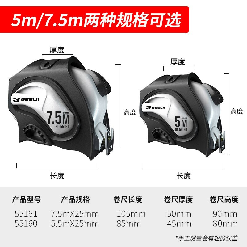- 商品名称:捷立(GeeLii)5米钢卷尺 家用钢尺卷盒尺 木工尺装修测量尺子 55160