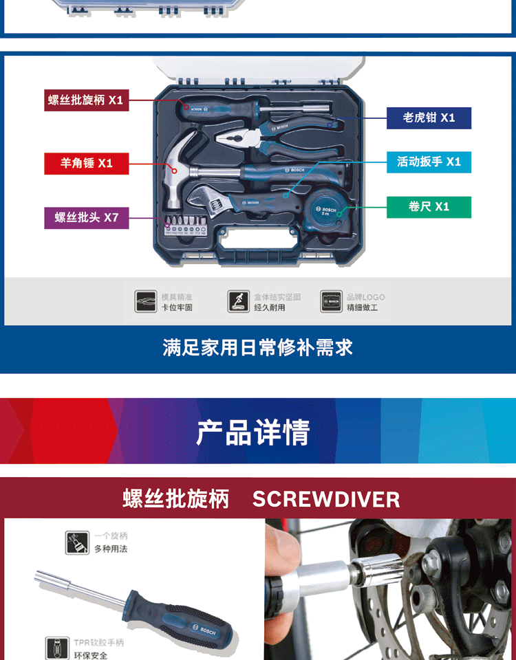 - 商品名称:博世(BOSCH)家用多功能五金工具套装(12件套) 手动工具箱