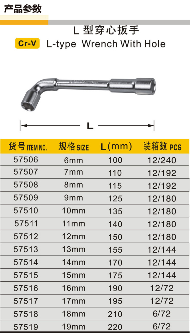 - 商品名称:鹰之印 烟斗型穿孔套筒L型扳手 弯头穿孔外六角扳手 T字型扳手 10MM 57510 可定制