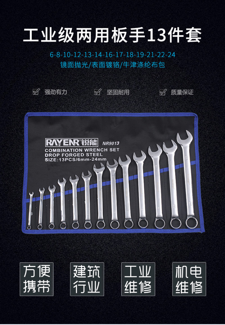 - 商品名称:锐能 (RAYENR) 两用扳手套装 开口梅花扳手两用扳手套装开口扳手工具扳子13件装 NR9013(269913)