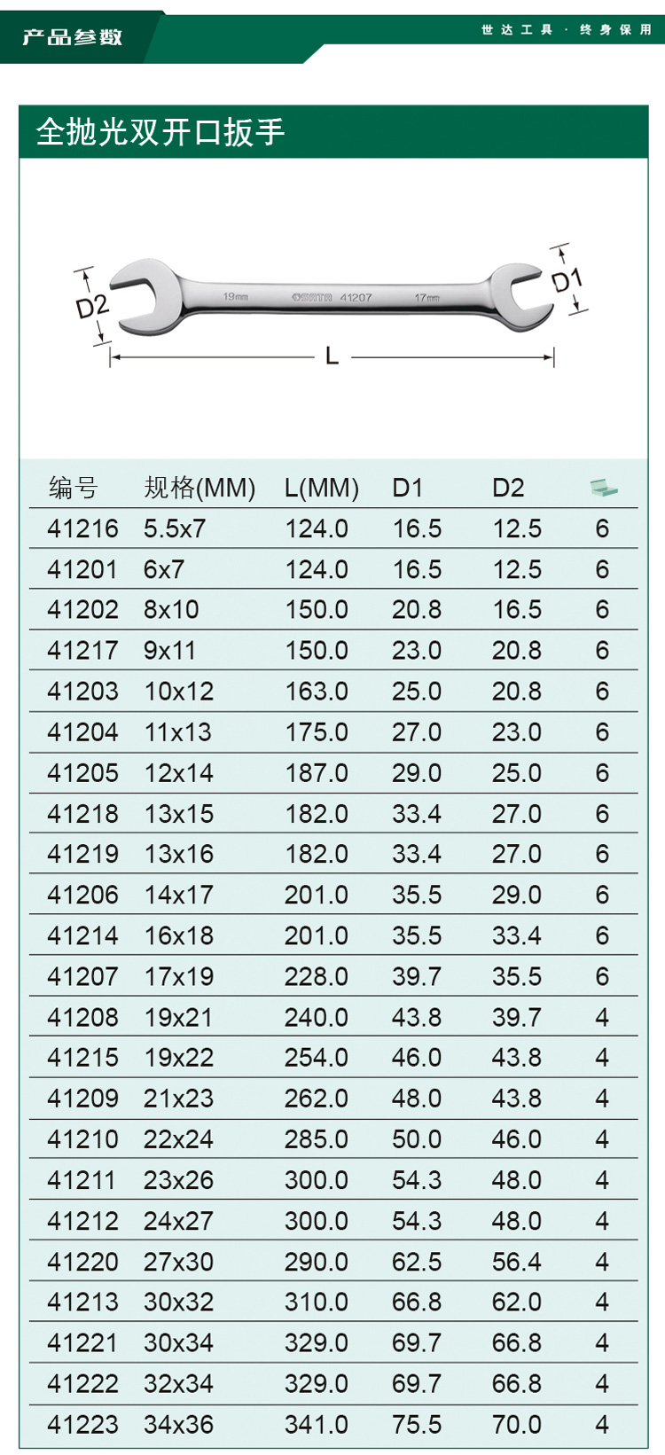 - 商品名称:世达 SATA 41207 全抛光双开口扳手17x19MM