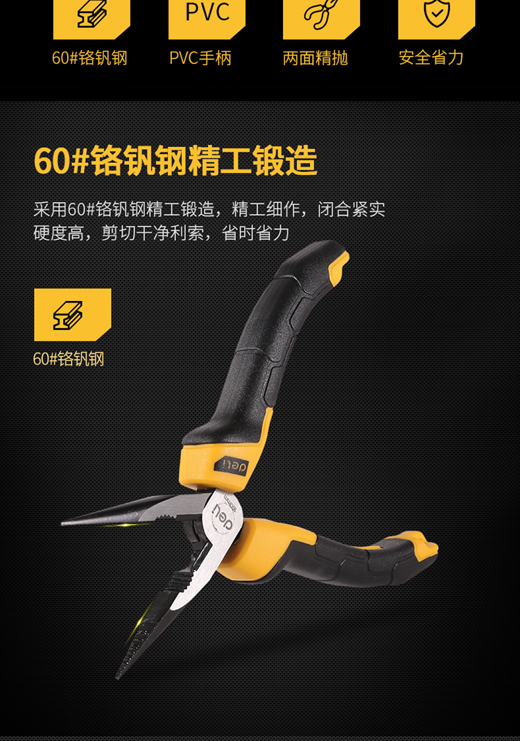 - 商品名称:得力(deli) 胶柄尖嘴钳60号铬钒钢夹持钳手柄PVC包胶断线钳6英寸 DL2106Z