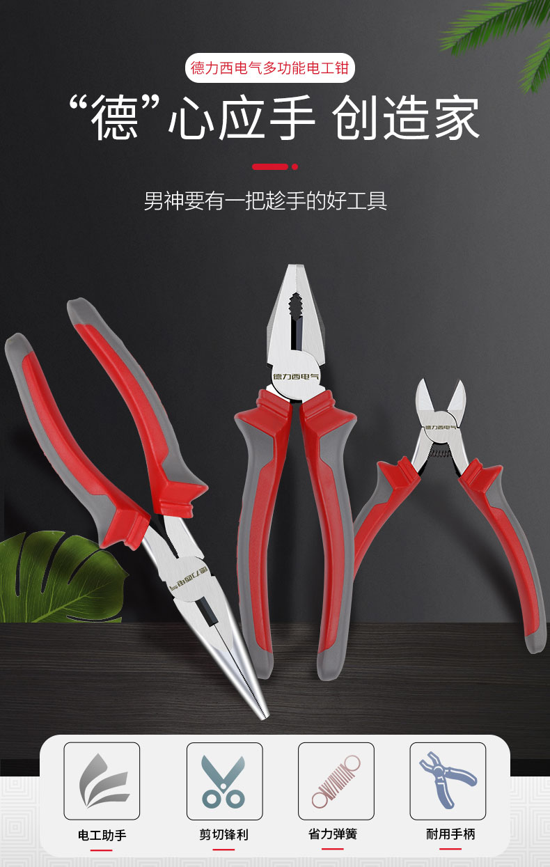 - 商品名称:德力西电气(DELIXI ELECTRIC)多功能电工尖嘴钳 家用尖口钳 尖头钳 6寸 160mm