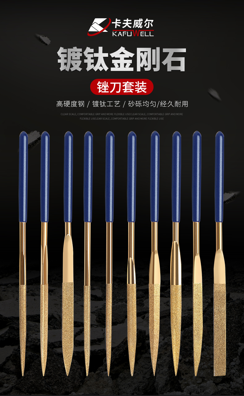 - 商品名称:卡夫威尔 镀钛金刚石锉刀10件套装扁平圆形扁锉柳叶刀型半月三角四方椭圆3*140mm混合装 FC3432