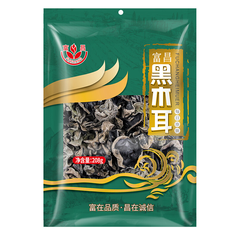 - 商品名称:富昌 东北黑木耳208g 肉厚无根秋木耳 煲汤炒菜凉拌火锅材料 特产山珍南北干货