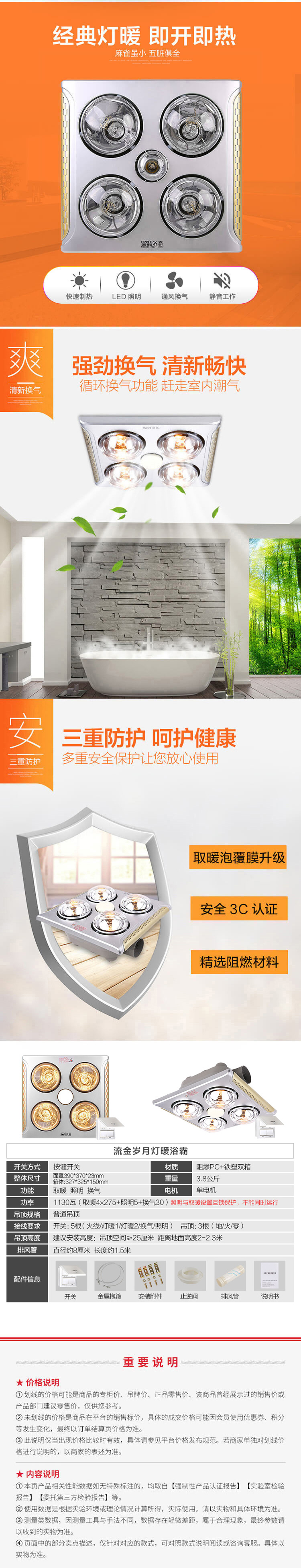 - 商品名称:欧普照明(OPPLE) 安全灯暖 即开即热 多功能浴霸卫生间浴室适用 普通吊顶
