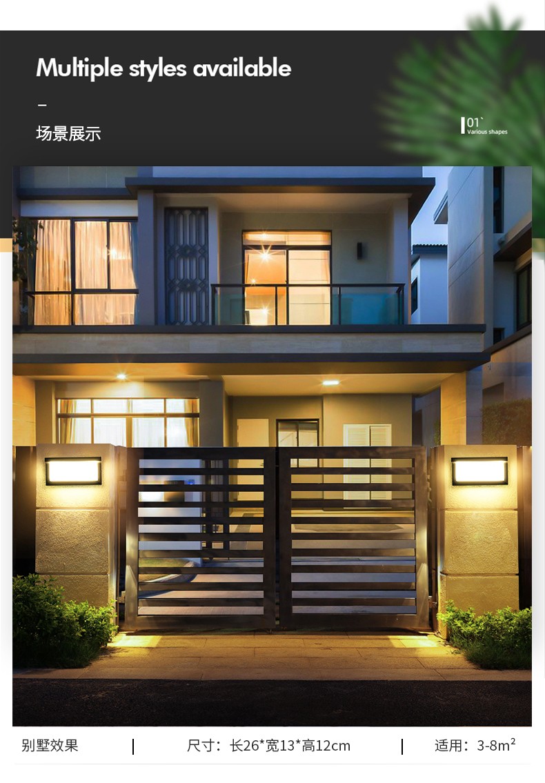 灯力 户外壁灯欧式北欧室外防水过道楼梯庭院庭院大门口灯现代简约室内阳台走廊卧室客厅led床头灯灯具 暖光10w(配LED贴片光源)