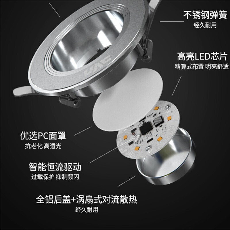 商品名称:雷士(NVC)LED筒灯天花灯 金属铝材砂银 4瓦暖白光4000K 开孔70-80mm