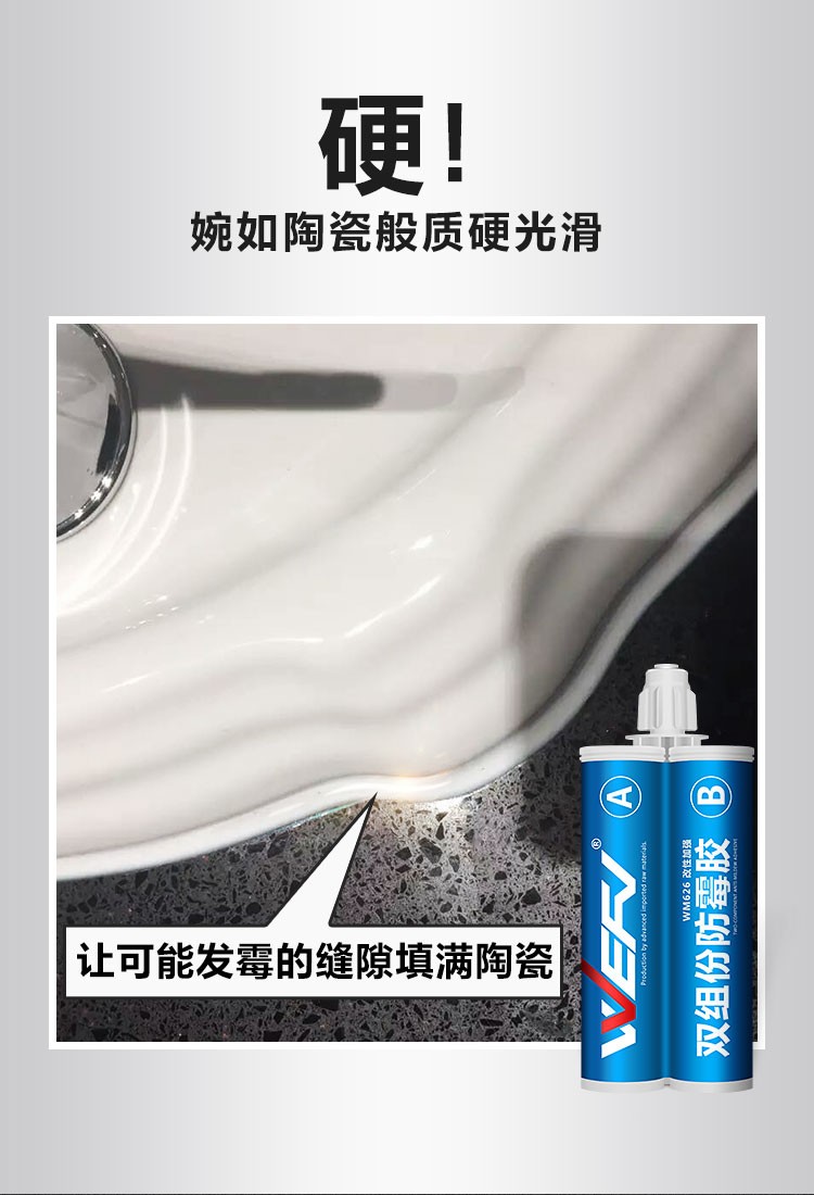 商品名称:WEFV维芙 新型双组份中性防霉玻璃胶 【硬滑如瓷型】卫生间厨房厨卫马桶底座水槽缝隙防水家用密封胶美缝剂