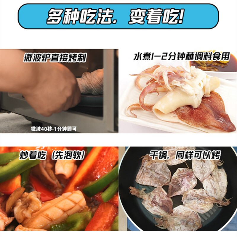 商品名称:鱼臻多 北海烧烤鱿鱼干芥末鱿鱼丝共30-35条特产海鲜干货KTV酒吧手撕海产品 【淡晒足干】A4鱿鱼17-24条【配芥末酱油】