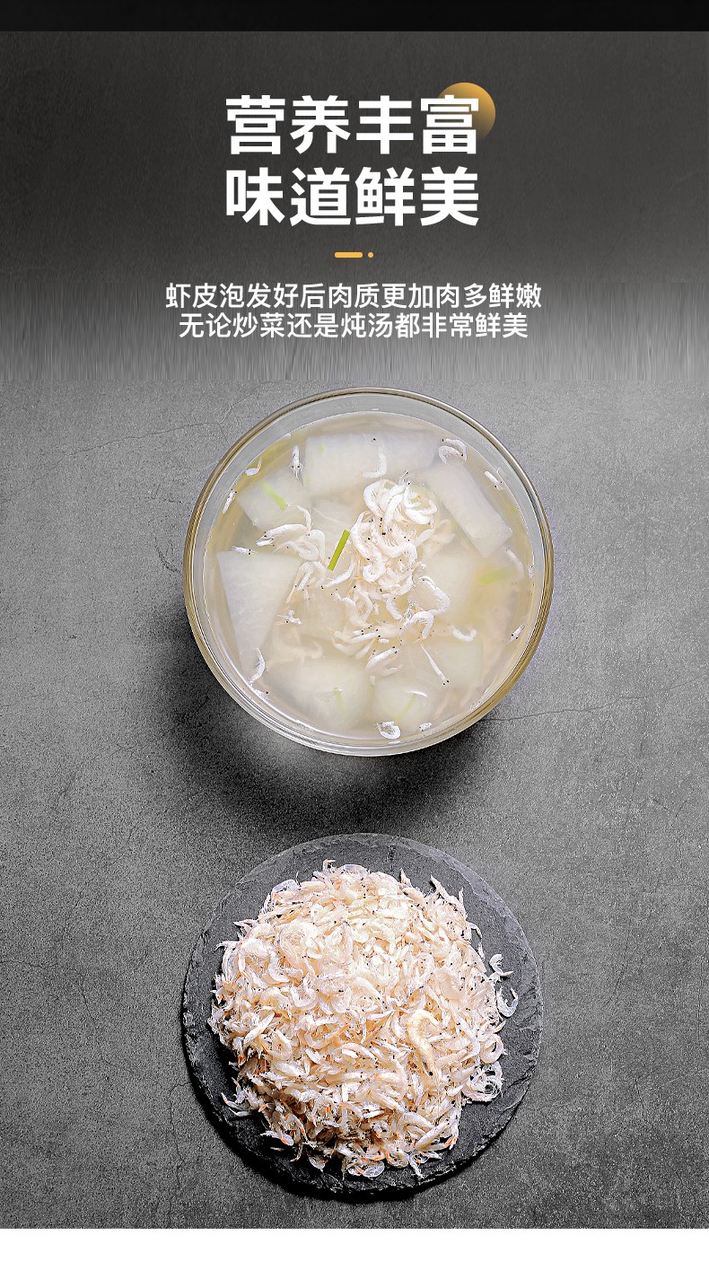 - 商品名称:鱼臻多 新鲜淡干虾皮宝宝儿童特级无盐补钙小虾米干货海产即食海鲜500g 500克-【低脂高蛋白】-【淡干不咸】
