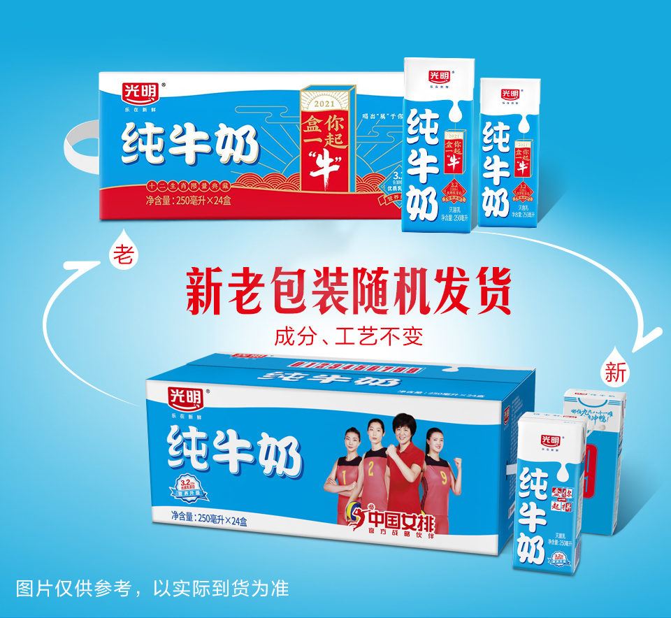 - 商品名称:光明 纯牛奶250mL*24盒(新老包装随机发货)