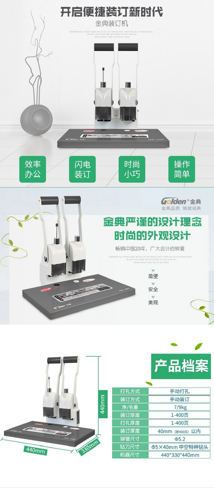 商品名称:金典(GOLDEN)GD-100财务凭证装订机打孔机会计凭证档案打孔封