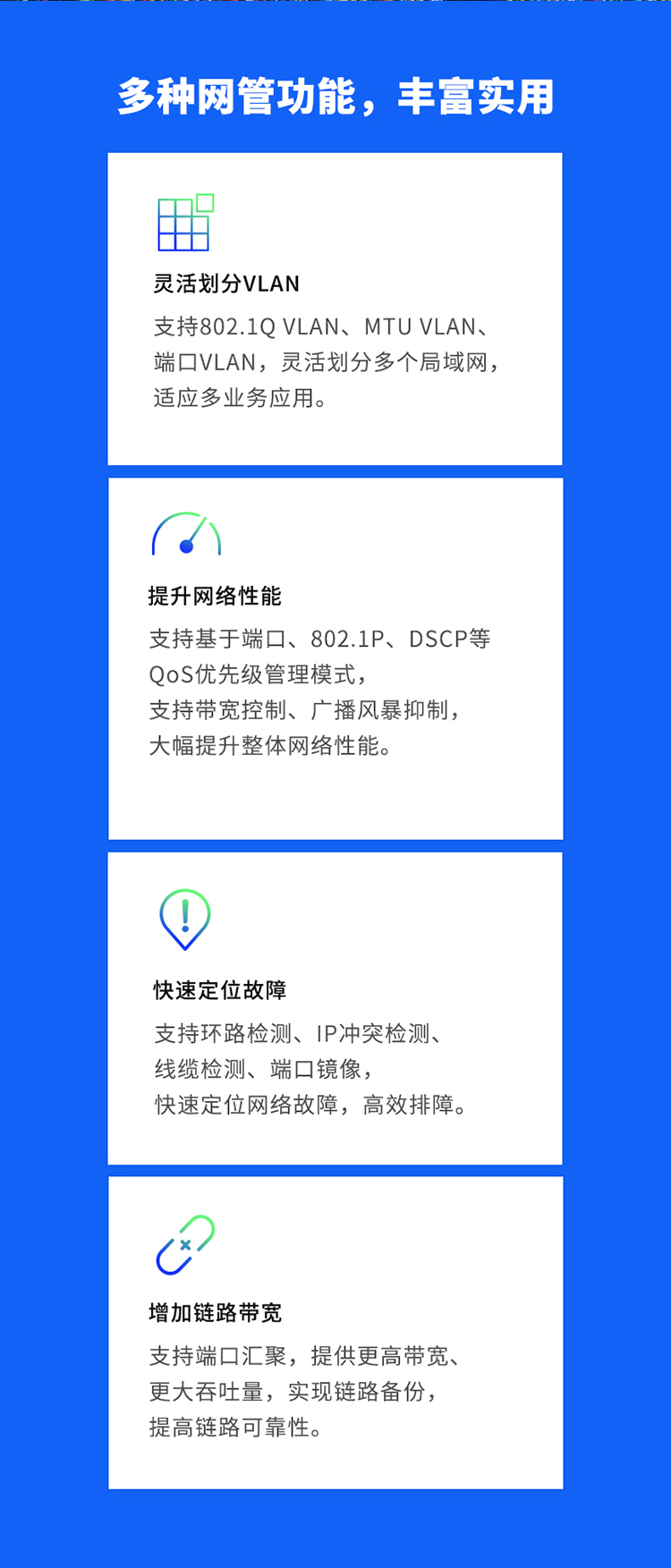 - 网络标准:IEEE 802.3、IEEE 802.3i、IEEE 802.3u、IEEE 802.3ab、IEEE 802.3ad、IEEE 802.3x、IEEE 802.1p、IEEE 802.1q