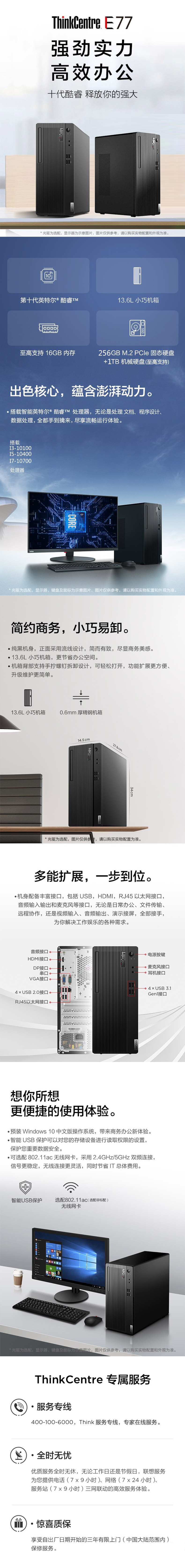 - 商品名称:联想ThinkCentre E77商用台式电脑 酷睿I5-10400F/16G/1T+256GSSD双硬盘/2G独显/内置喇叭/19寸IPS显示器/保修五年