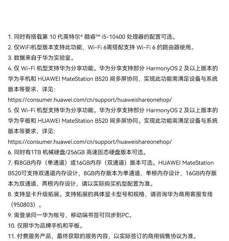 - 商品名称:华为(HUAWEI)MateStation B520商用台式电脑整机 i5-10400/16G/256G SSD/集显/WiFi6/23.8英寸显示器