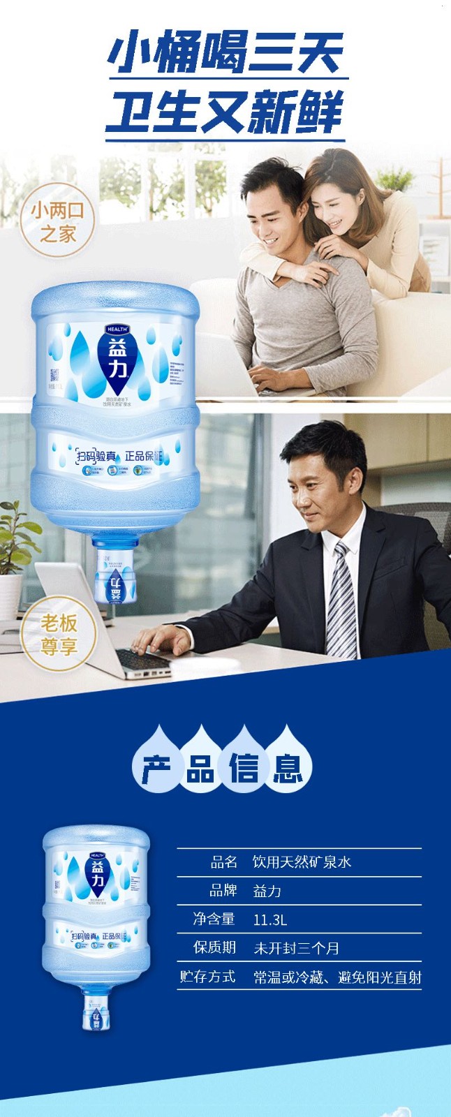 - 商品名称:益力 天然桶装矿泉水 桶装三加仑11.3L 1桶