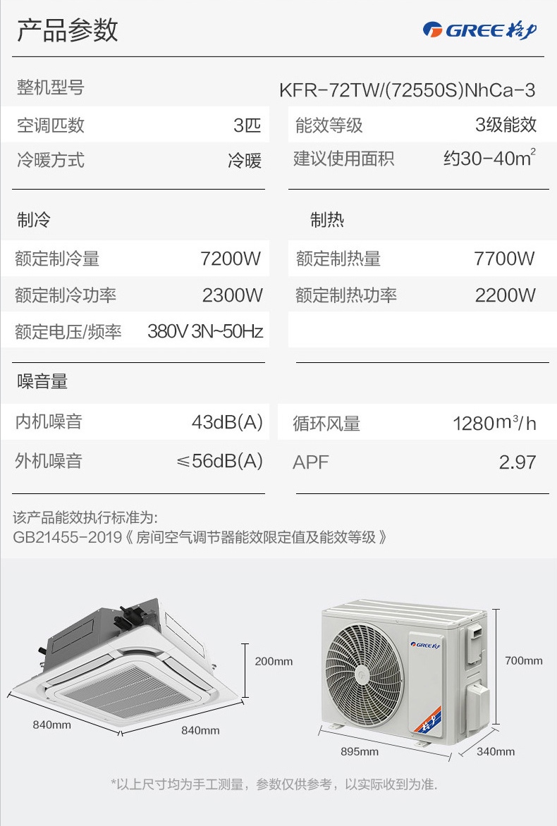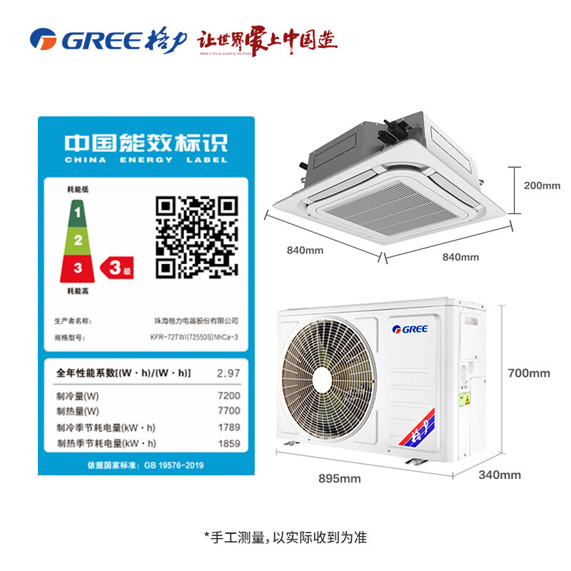 - 商品名称:格力(GREE)中央空调3匹p吸顶天花机一拖一嵌入式天井机定频冷暖KFR-72TW/(72550S)NhCa-3含长铜管96米、PVC排水管96米、打孔、吊架、高空作业、吊杆、开关一套、电源线、配套支线(含线管)96米
